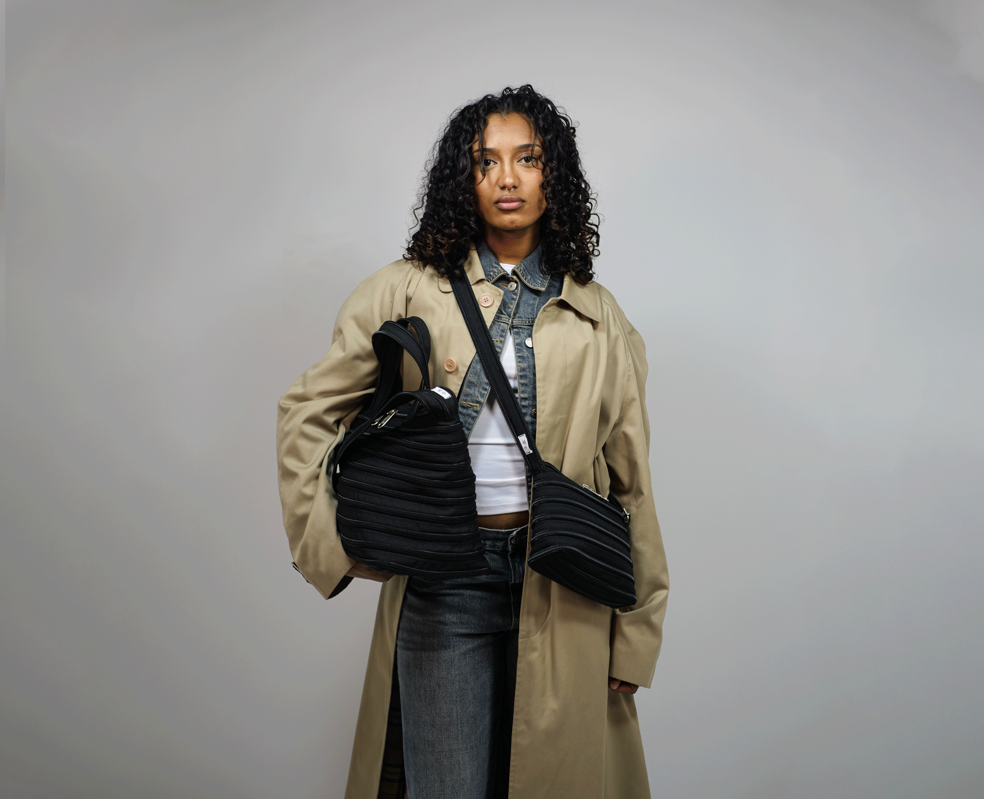 Fermeture éclair YKK, empiècements métalliques en acier inoxydable.